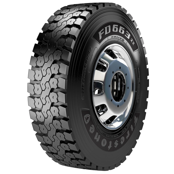 O pneu Firestone FD663 II é um pneu radial sem câmara desenvolvido para uso em eixos de tração de caminhões e ônibus, em rodovias pavimentadas de média e longa distância. • Novo Composto de rodagem