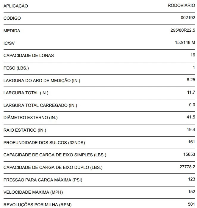 • Maior recapabilidade - mesma tecnologia empregadas nos pneus Firestone.